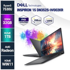 델 노트북 Inspiron 15 사무용 노트북 대학생, Dell 인스피론 15 DN3525-W002KR, WIN11 Home, 32GB, 1TB, 라이젠5, 블랙