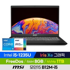 [사은품 증정!] MSI 모던15 B12M-i5 가성비 주식용 사무용 휴대용 Iris Xe 그래픽 초경량 15인치 사무용 노트북, Modern 15 B12M-i5, 윈도우 미포함, 8GB, 1TB, 코어i5, 블랙