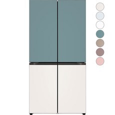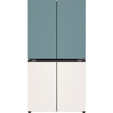 LG전자 디오스 오브제컬렉션 4도어 냉장고 T873MTE111 870L 방문설치, 클레이민트(상), 베이지(하)