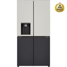 LG전자 디오스 오브제컬렉션 양문형 냉장고 메탈 방문설치, 그레이(상단), 화이트(하단), S634MGW12Q