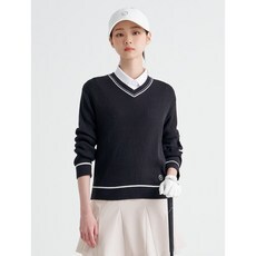 [빈폴골프] 여성 블랙 브이 조직 변형 니트 풀오버 (BJ2851A475)