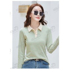 2024 NEW 여성 폴로 골프 긴팔티 줄무늬티셔츠 브이넥티긴팔 여자 가을 티셔츠 여성골프티셔츠 니트긴팔티 소프트 프리미엄원단