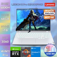 LENOVO 레노버 노트북 LEGION 5 Pro 16ARH R7 3060 Edition 82RG00FNKR WIN11 가성비 노트북 고성능 게이밍 노트북, WIN11 Pro, 64GB, 1TB, 라이젠7, 화이트