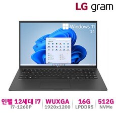 LG전자 LG그램 14인치 12세대 윈도우11 i7 16GB 512GB WUXGA 블랙, 14ZB90Q-G.AAC6U1, 코어i7, WIN11 Home