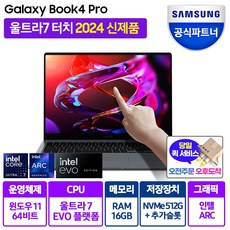 삼성전자 갤럭시북4 프로 NT940XGQ-A51A 14인치 인텔 코어 울트라5 최신형 사무용 가벼운 터치 노트북, WIN11 Home, 16GB, 1TB, 플래티넘 실버