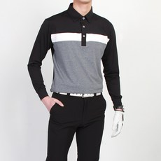 더마인드 남섬용 BT 삼단배색 스판 카라 골프 긴팔 티셔츠