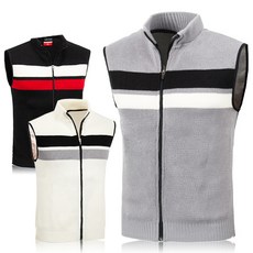 제로골프 남성 앞면 배색 스판 풀집업 니트조끼